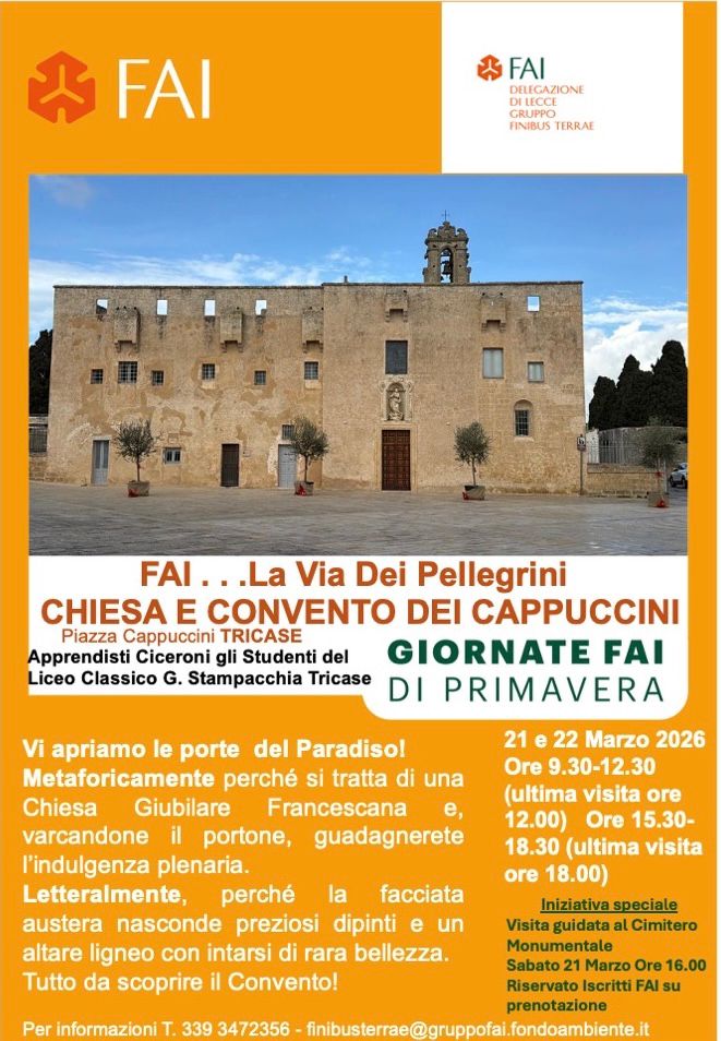 ✨ Gli studenti vestiranno i panni di “Apprendisti Ciceroni”, accompagnando i visitatori alla scoperta della suggestiva Chiesa e Convento dei Cappuccini di Tricase, luogo ricco di storia, spiritualità e bellezza artistica.